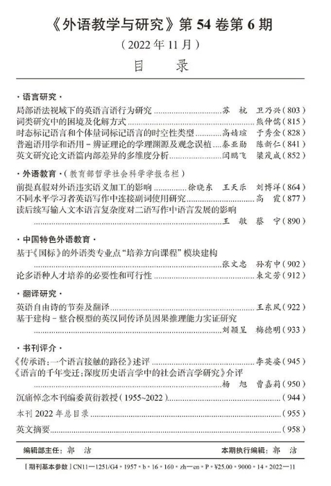 注:本文选自《外语教学与研究》2022年第6期,第803—812页。由于篇幅所限,参考文献及注释已省略。