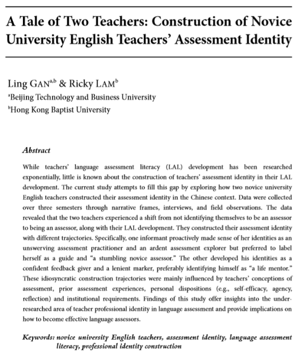 关键词:新手大学英语教师;测评身份;语言测评素养;职业身份建构