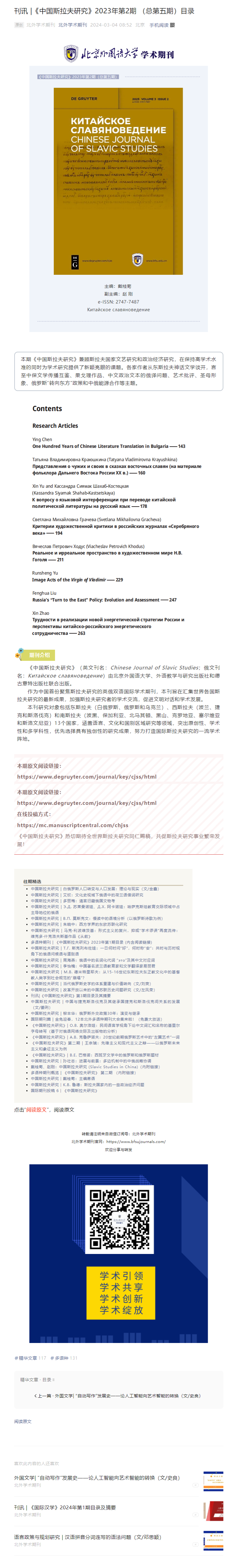刊讯 |《中国斯拉夫研究》2023年第2期 (总第五期)目录