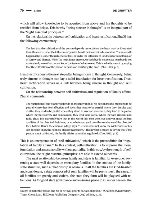 that the cultivation of the person depends on rectifying the heart. (Zhu, 1983, p. 8)